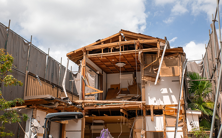 建物を壊して敷地に何もない状態に戻すことや、内装の変更のために建物内部を撤去するなどが解体工事になります。 建物を安全かつ効率的に取り壊します。様々な手続きや通知等も弊社でさせていただいております。